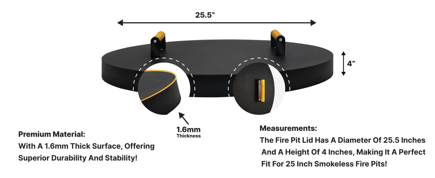 - Precision-Fit Design: Crafted to fit 25″ smokeless fire pits, this round lid ensures a secure, perfect fit, optimizing safety and usability for enhanced protection during use.