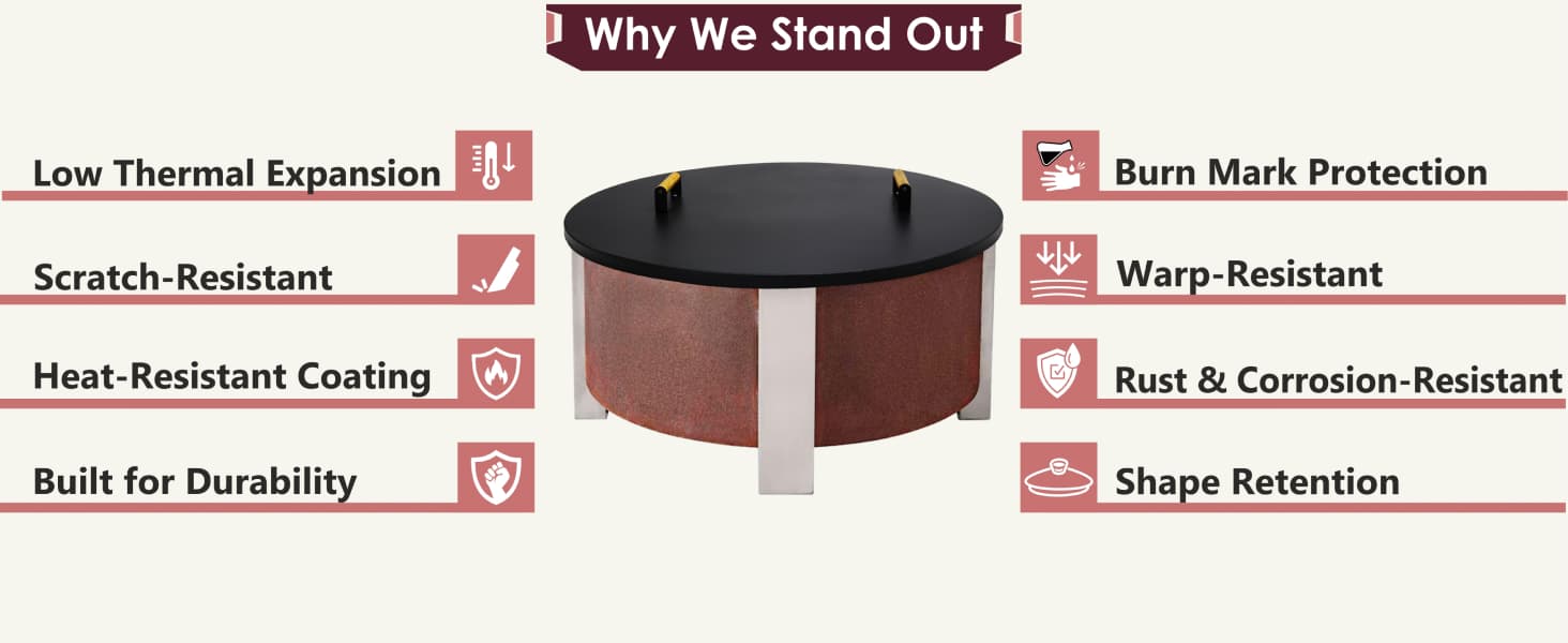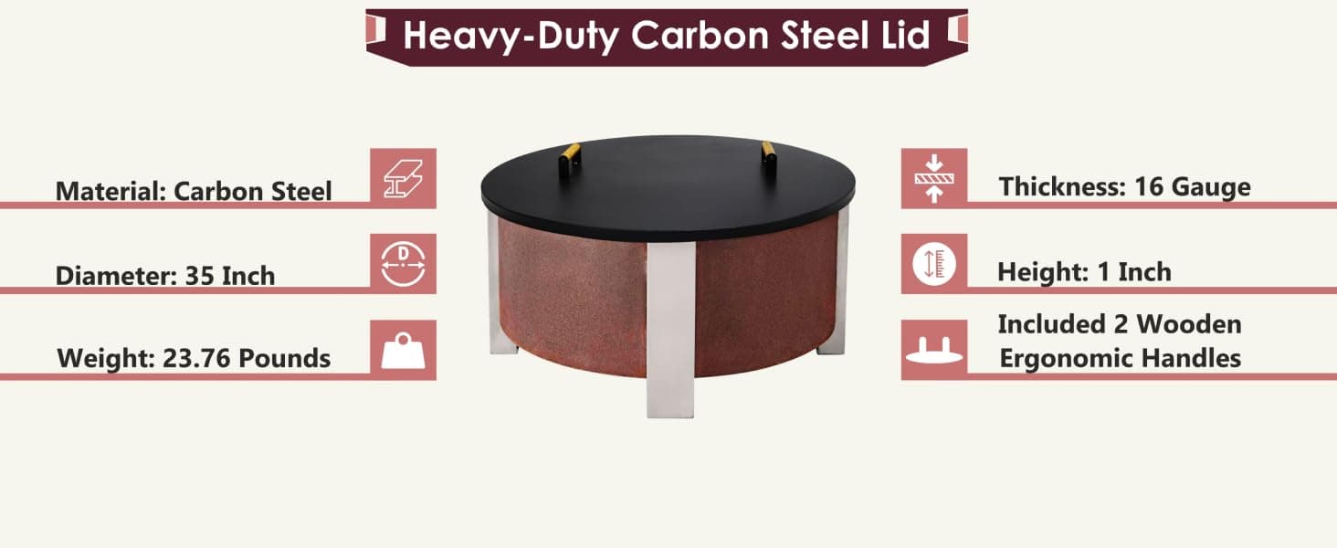 - Superior Material Quality: Engineered with heat-resistant, coated carbon steel, this smokeless fire pit lid delivers exceptional durability and long-lasting outdoor performance while providing robust protection against the elements.