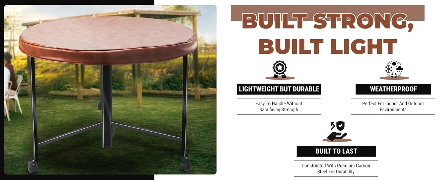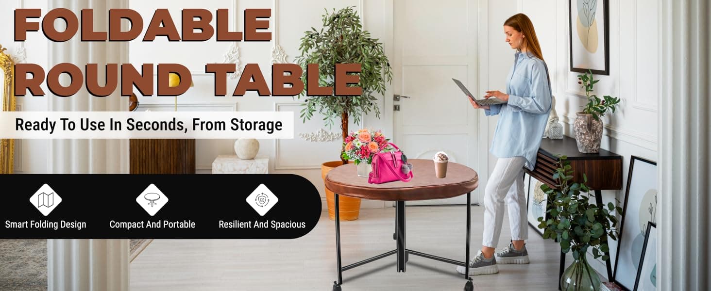 - Comfortable and Spacious Seating: This round card tables folding & portable round table includes a leather-finish cover that enhances the look and protects the round table folding from spills, dents, and scratches.