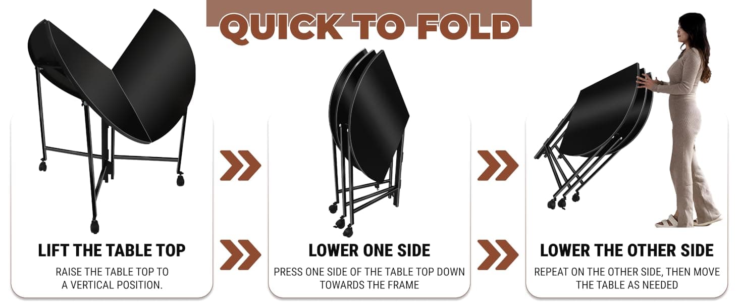 - Elegant, Durable round tables :This 36 inch dining table folds neatly at the center, and this circle folding table is easy to carry to organize event table, card tables, Conference Table or banquet tables & is compact to store.