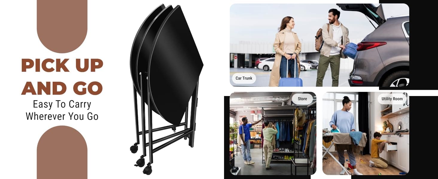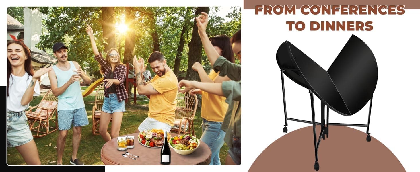 - Space-Saving Foldable Design: Our large round folding table can be moved easily with wheels This modern dining table round can be locked securely to used as a business meeting table, round camping table & folding patio tables for outside.