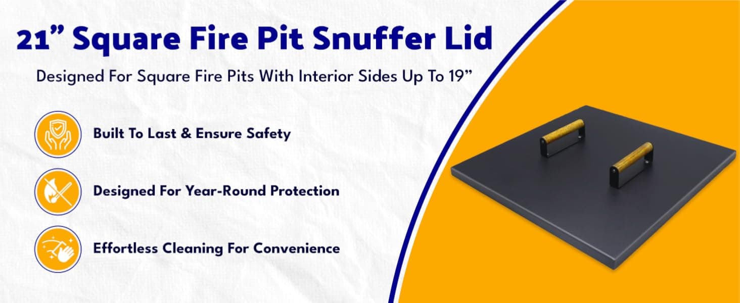 Febtech – 21″ Fire Pit Snuffer Lid – Square Steel FirePit Cover for 19″ Fire Pits, Coating Fire Pit Lid Square with Wooden Handles, Outdoor FirePit Accessory