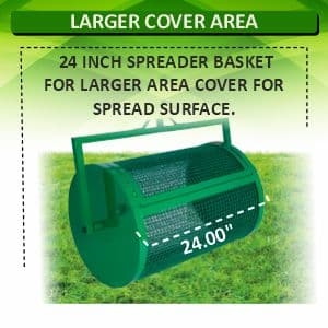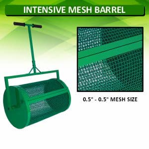 ADJUSTABLE SIZE: This 24” Mesh Basket compost spreader can break up the clumps while tumbling. Its intensive mesh openings can leave the bigger chunks of debris inside the drum. With an adjustable pole 24.4″ and 28.5″ in length is designed to meet different height requirements. It’s pretty simple, and you can just screw out the bolt to adjust the length you will finish your work in just a few passes.