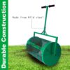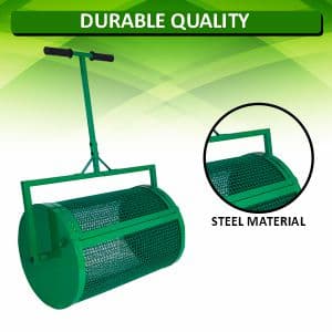 STURDY CONSTRUCTION: All-iron construction and powder-coated finish make this peat moss spreader sturdy, rust-proof, and long-lasting. Besides, two locking clasps are firmly built to make sure it stays closing during rolling. It features two PVC grips for non-slip and maximum comfort.