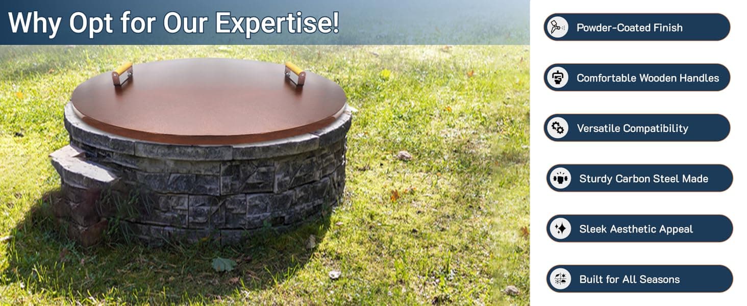 Durable Construction: The Febtech round fire pit cover is crafted from sturdy 16-gauge carbon steel, ensuring long-lasting durability and reliable protection for your outdoor fire pit.