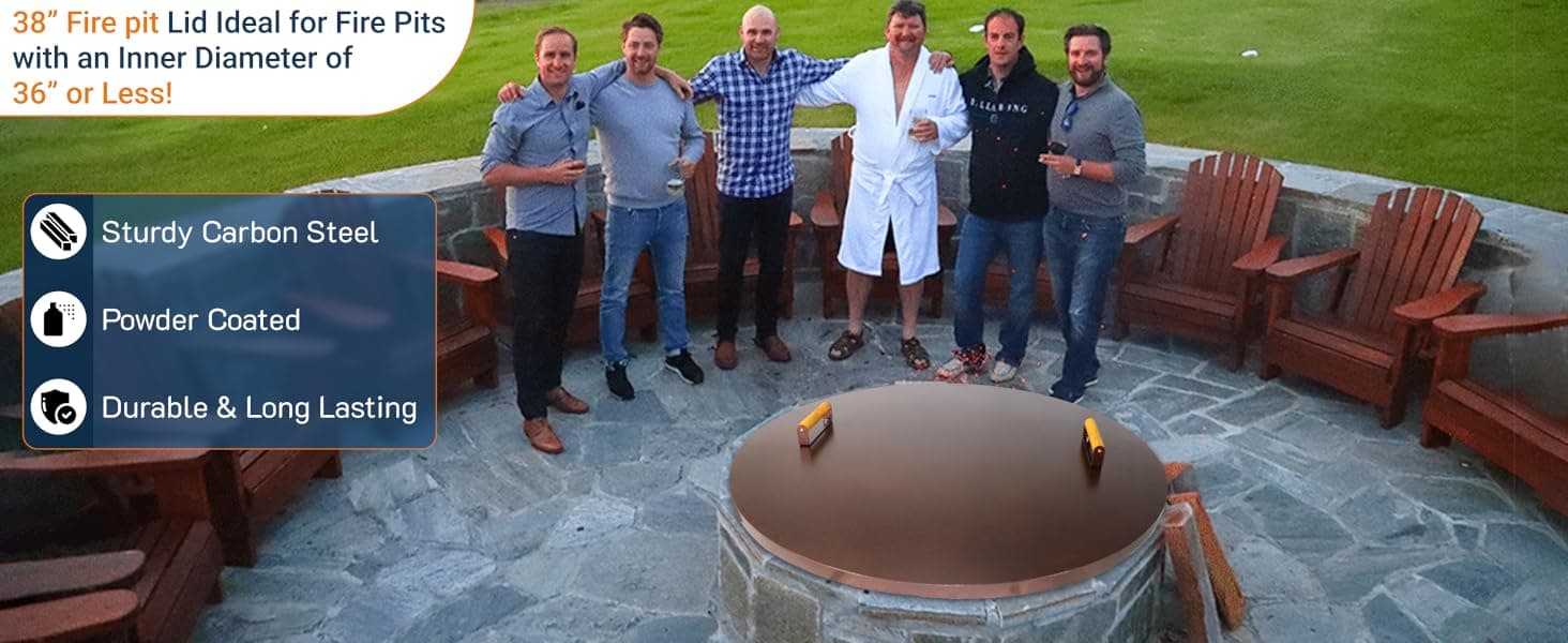 Febtech 38″ Fire Pit Cover – Durable 16-Gauge Carbon Steel, Rust-Resistant Finish, Dual Ergonomic Wooden Handles – Designed for Fire Pits up to 36″ Inner Diameter