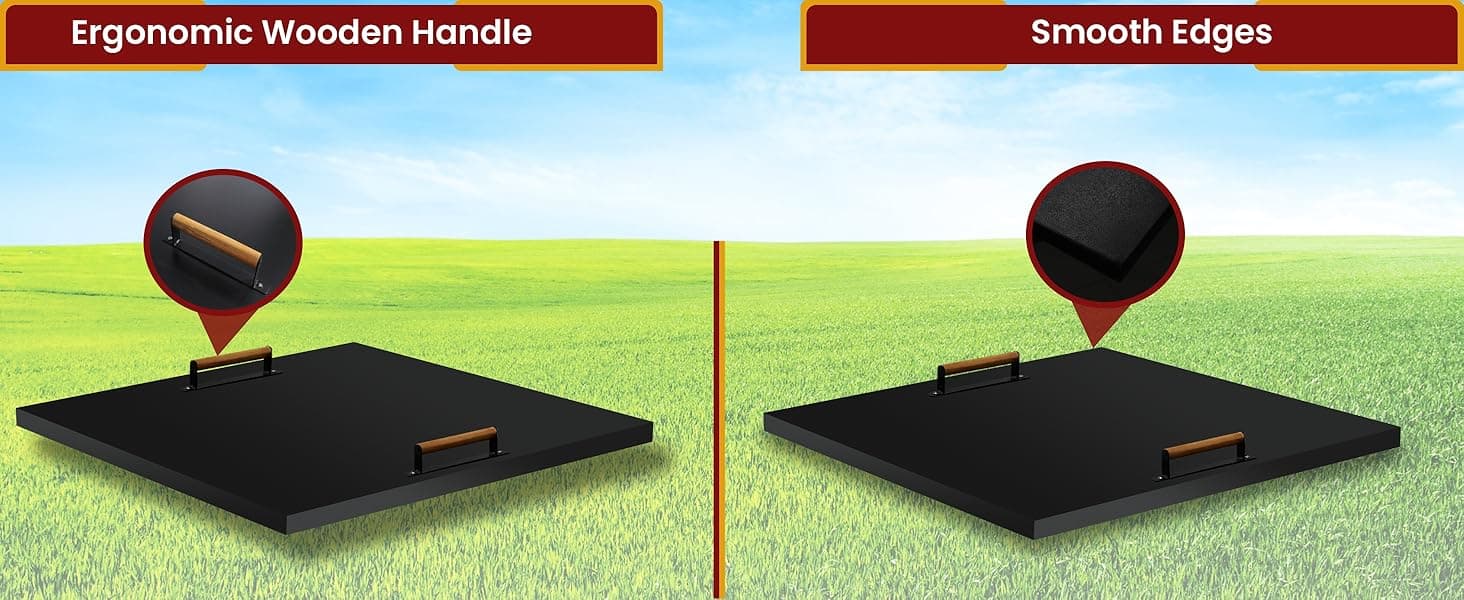 - Comfortable & Controlled Handling: This fire pit lid square Features sturdy wooden handles that stay cool to the touch, offering better grip and easier lifting for safe fire pit coverage and removal.