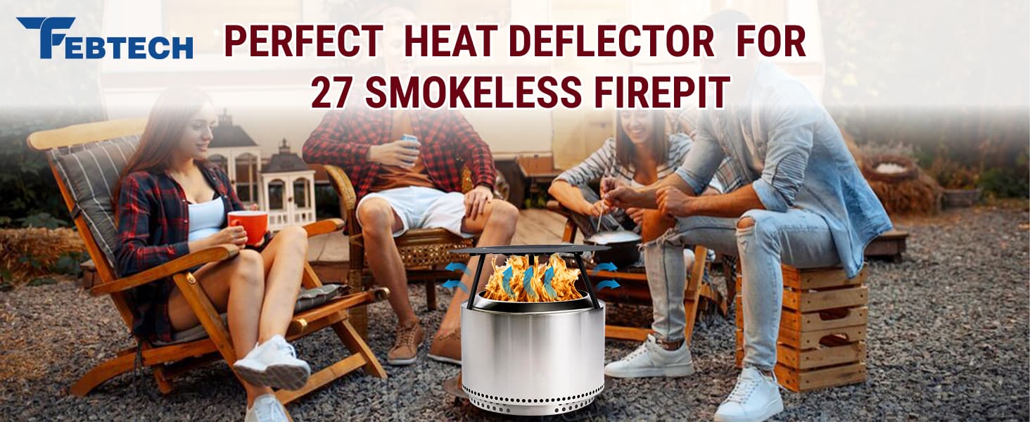 FEBTECH – Fire Pit Heat Deflector Compatible for Solo Stove Yukon and Other 27″ Firepit – Smokeless Fire Pit Heat Deflector with Lifting Handle – Smokeless Firepit Accessories