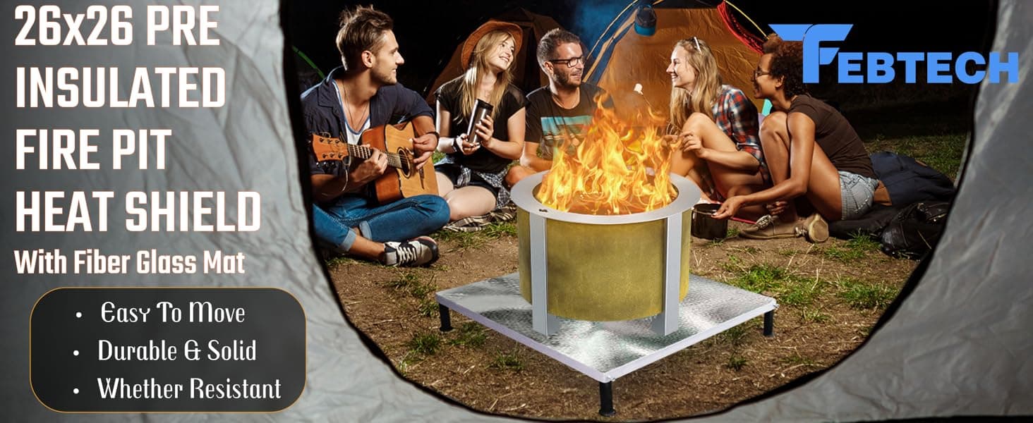 FEBTECH- Fire Pit Heat Shield 26″x26″ – Pre Insulated Steel Heat Shield with Fiberglass Mat – Perfect Protection for Patio, Wooden Deck & Concreate Surface