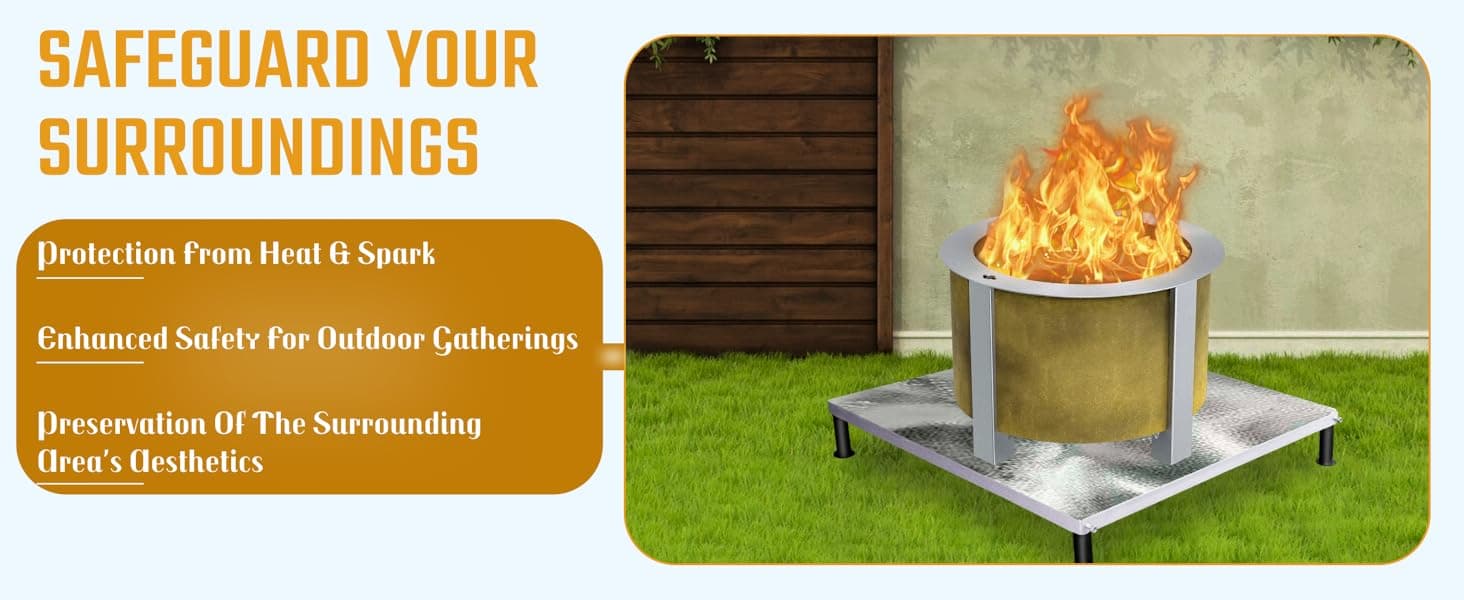 - Unmatched Protection: Our 26″ x 26″ Fire Pit Base is designed to provide top-notch 3 layer protection, With pre-insulated steel and a provided fireproof mat for under fire pit to block the intense heat
