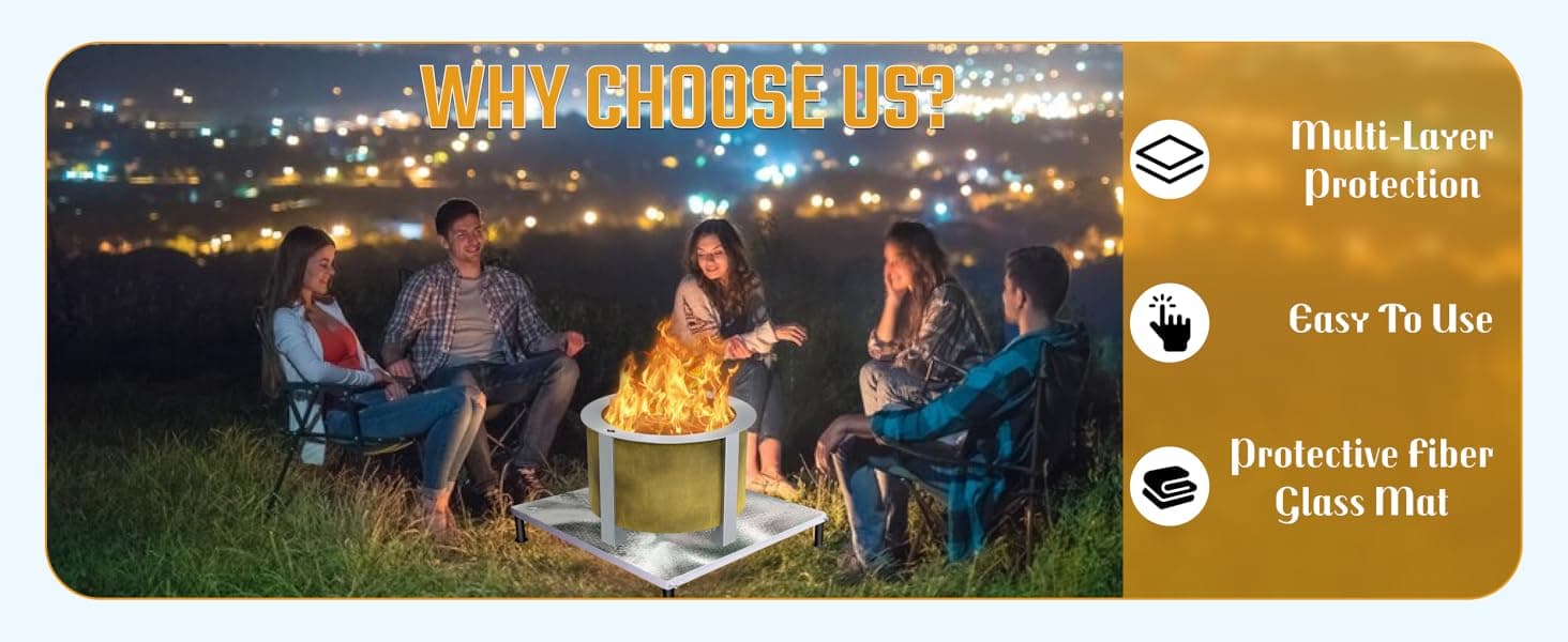 - Simple Setup: No need for intricate assembly, Place the firepit heat shield with the fiberglass mat beneath your fire pit and enjoy a safe and delightful bonfire, whether you’re indoors or outdoors