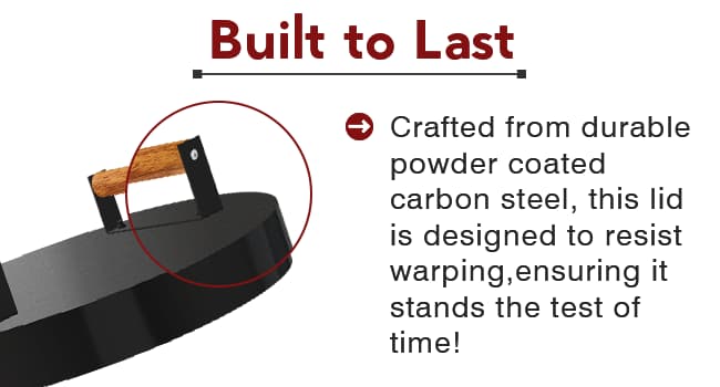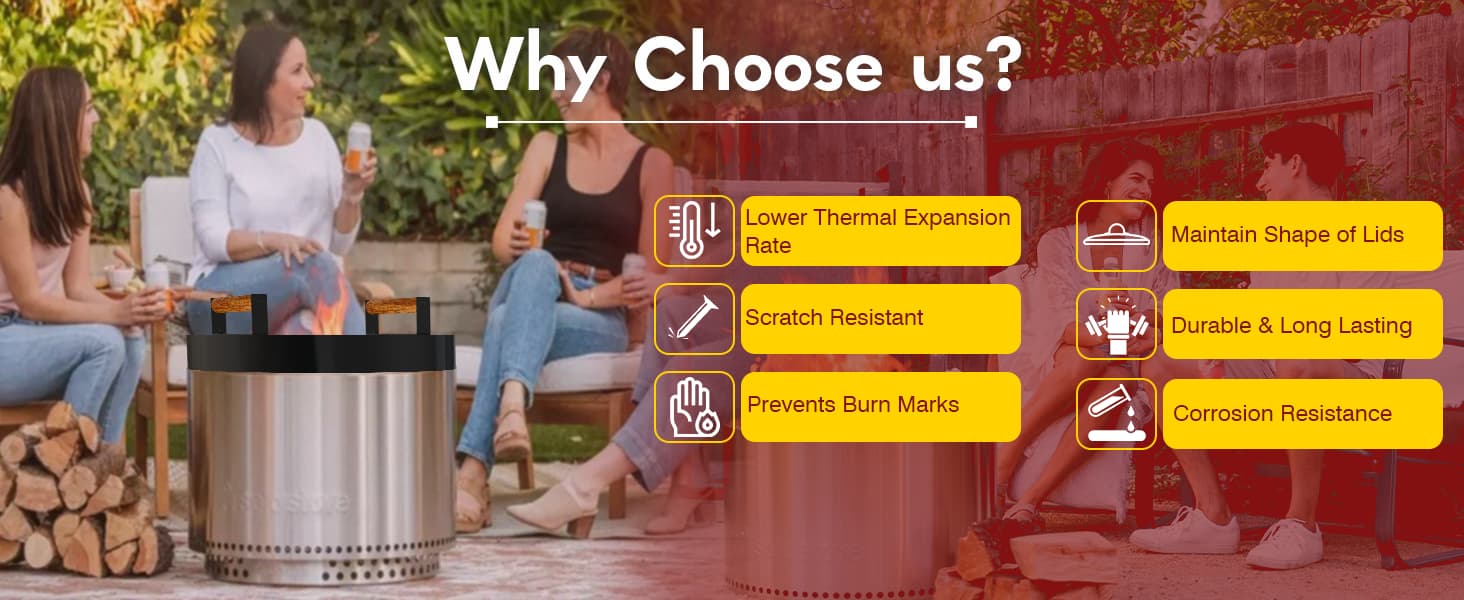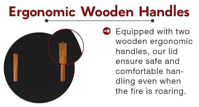 - Ergonomic Wooden Handles : With two ergonomic wooden handles, the smokeless fie pit lid offers effortless and secure handling, ensuring both comfort and safety as you manage it