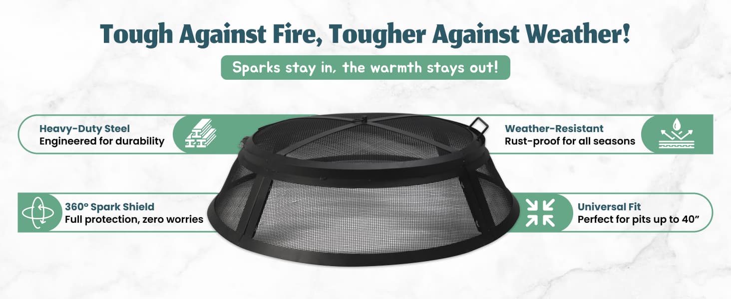 - Reliable & Resilient: Our large fire pit spark screen spark guard has high temperature resistant powder coated finish to ensure longevity. ensuring that your outdoor storage firepit screen cover maintains its appearance and integrity.