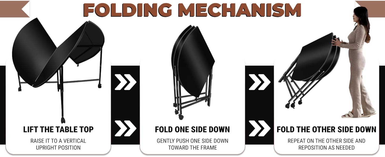 - Fold & Carry Effortlessly: This 48 round folding table folds neatly at the center,& this folding round table 48 inches is easy to carry to organize event table, card tables, Conference Table, round card table or banquet tables & is compact to store.