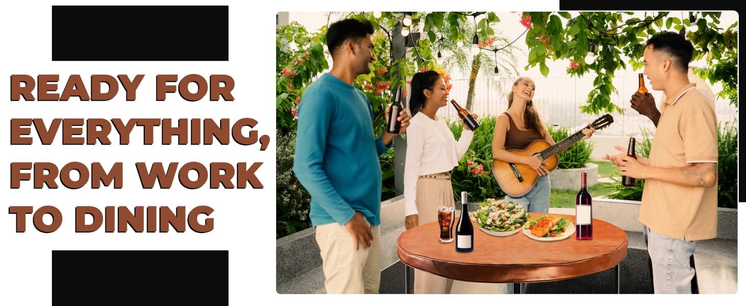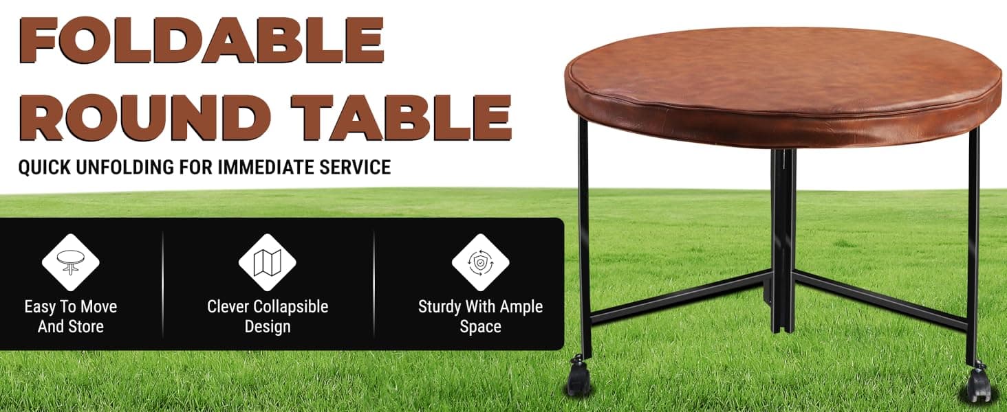 - Stylish 48 inch round folding table : This 48 folding table & round portable table includes a leather-finish cover that enhances the look and protects the round tables folding table 6ft from spills, dents, and scratches.
