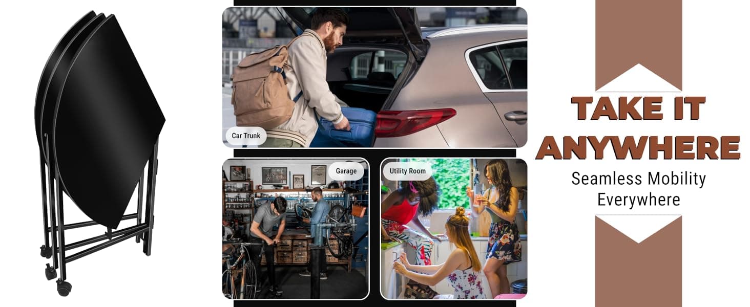 - Move Freely & Lock in Place 48 round table : Our extra large folding table can be moved easily with wheels This 30 round table can be locked securely to used as a business meeting table, round camping table & folding patio tables for outside.