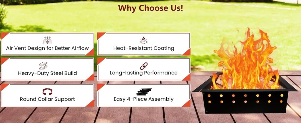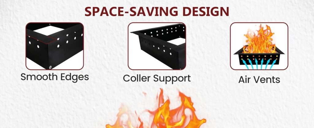 • Air Vents Design: With built-in air vents, this fire pit insert facilitates proper airflow, enhancing combustion efficiency and maintaining a steady fire.