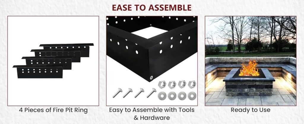 • Smokeless Design: This square bonfire fire pit ring is specially engineered to minimize smoke output, providing a more enjoyable and comfortable experience for you and your guests.