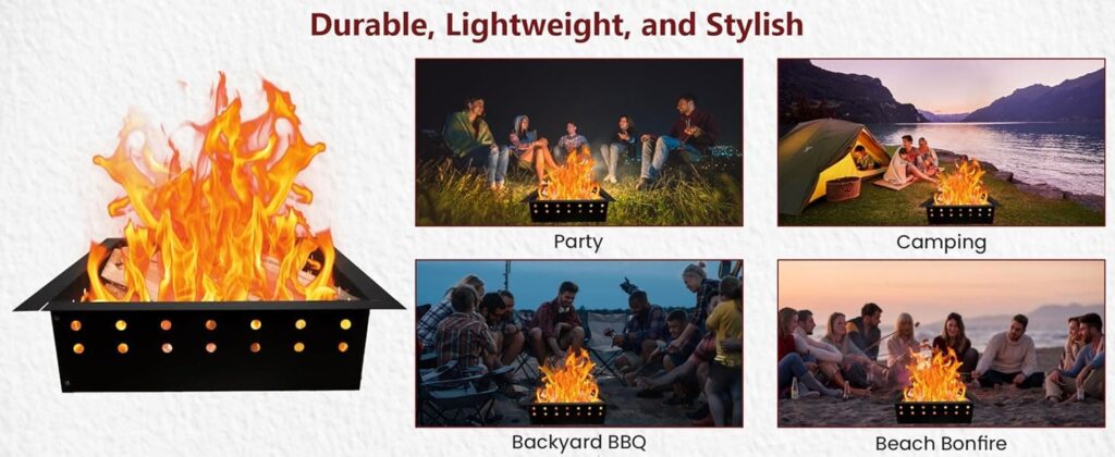 • Multi-Functional Design: The Square Fire Pit Insert offers versatile use, making it suitable for both above-ground and in-ground installations in various outdoor settings like gardens, backyards, and patios.