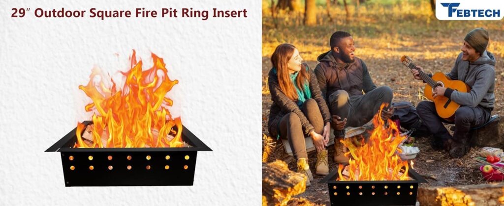 FEBTECH Smokeless Fire Pit Insert Square- 29″ OD x 25″ ID x 8″ H Carbon Steel Square Fire Pit Insert with Air Vents – DIY FirePit Ring for Above or In-Ground Use in Patios, Gardens, and Backyards