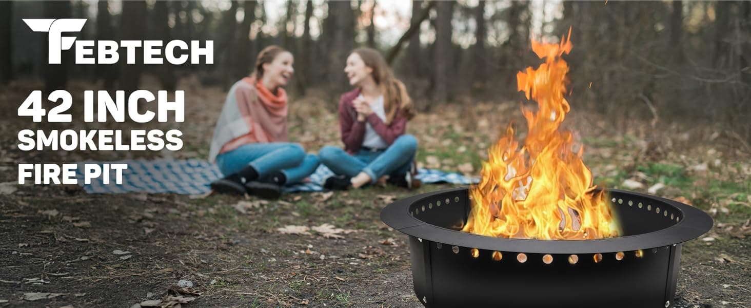 FEBTECH Smokeless Fire Ring Liner – 42″ OD & 36″ ID – Premium Carbon Steel Fire Ring with Heat Resistant Coating – DIY Portable Smokeless FireRing Designed for Memorable Gatherings Under The Stars