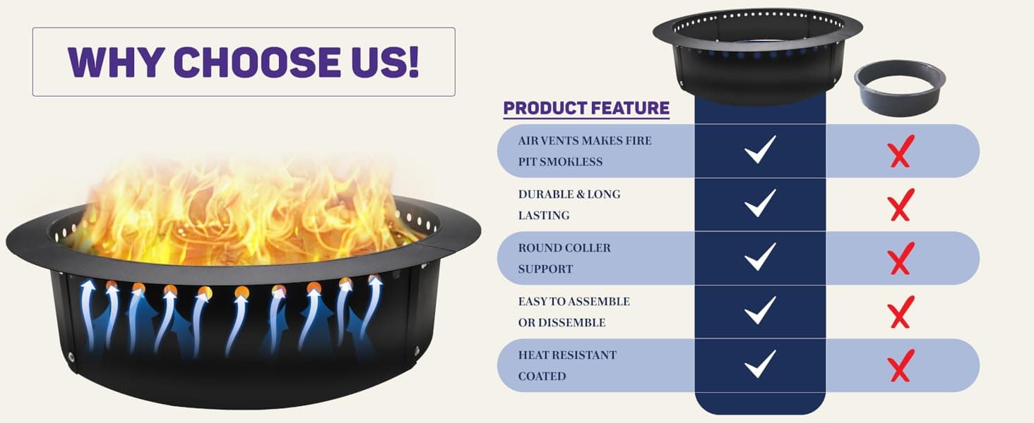 • Effortless DIY Setup: Designed for outdoor smokeless fire pits, this versatile ring easily fits into both in-ground and above-ground installations, making it perfect for homeowners and outdoor enthusiasts alike.