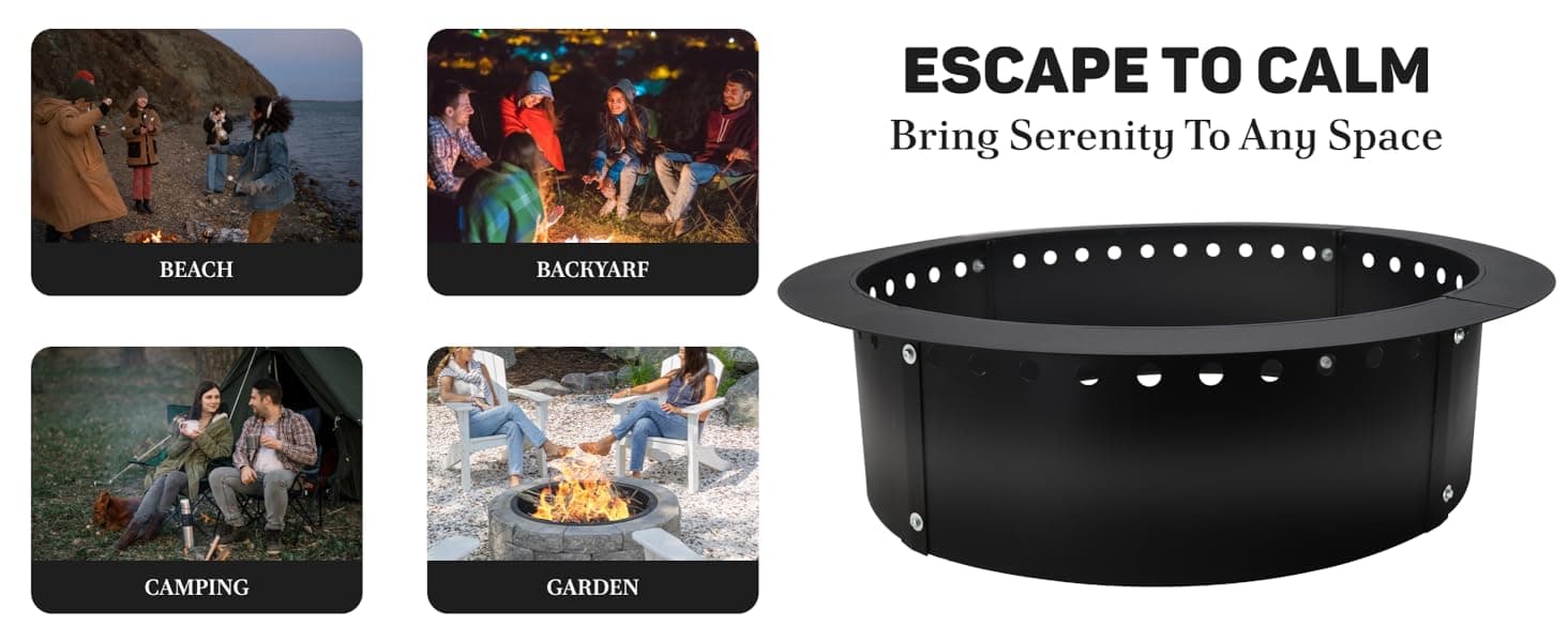 • Simple DIY Setup: Crafted for smokeless outdoor fire pits, this fire pit ring boasts a versatile design that easily fits both in-ground and above-ground installations, offering homeowners and outdoor enthusiasts a blend of convenience and functionality.