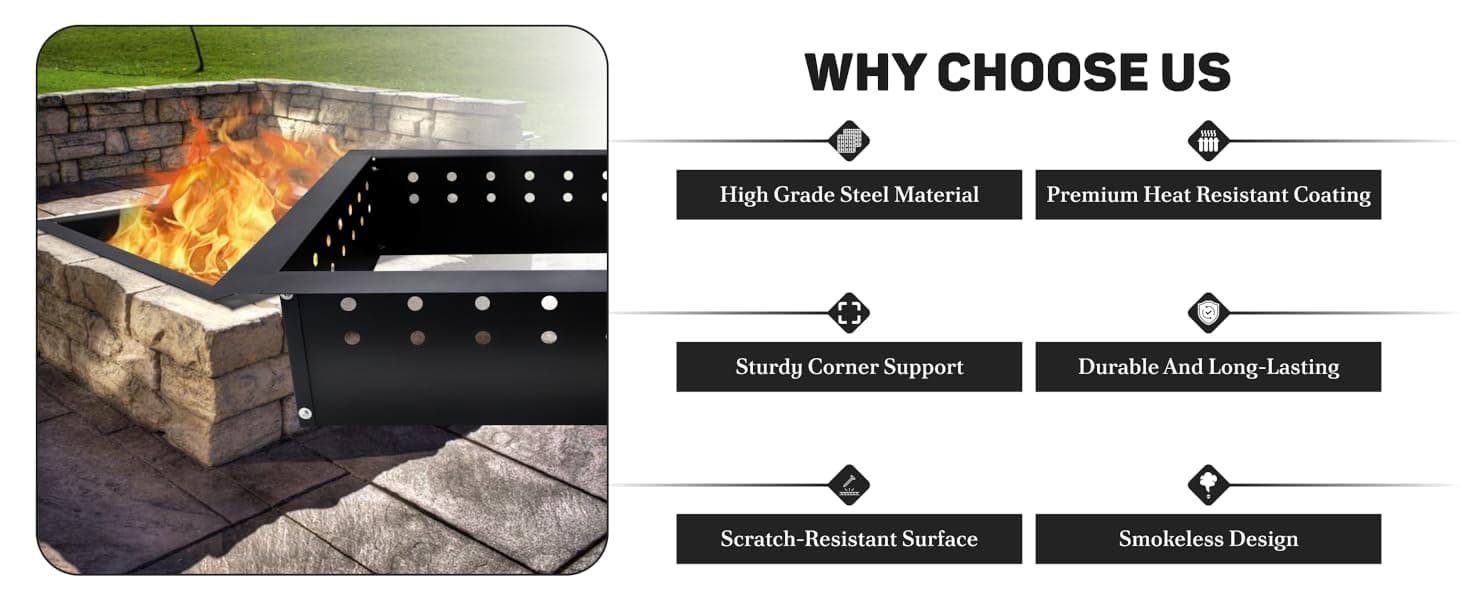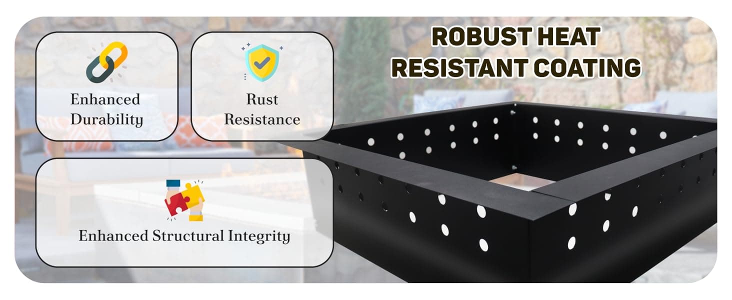 - Durable Heat Resistant Coating : Equipped with a high-temperature-resistant coating, this firepit ring withstands intense heat while offering superior protection against rust and corrosion, ensuring a long-lasting, sleek, and functional design.