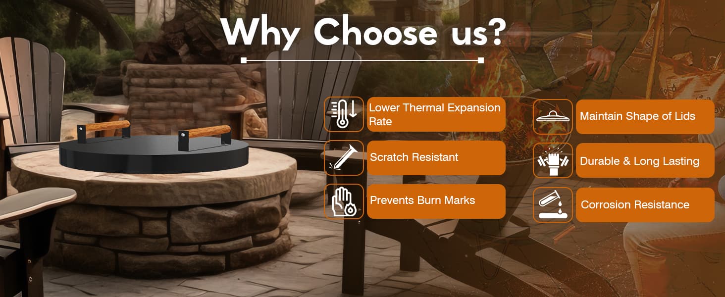 - Durability: Constructed from robust carbon steel and finished with a weather-resistant powder coating, this firepit lid is built to endure tough outdoor conditions for reliable, long-lasting use.