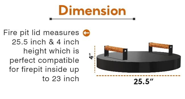 - Custom Fit: This tabletop firepit lid is meticulously crafted to fit firepits with an interior diameter of up to 23 inches, providing a secure and precise fit that improves both safety and functionality.