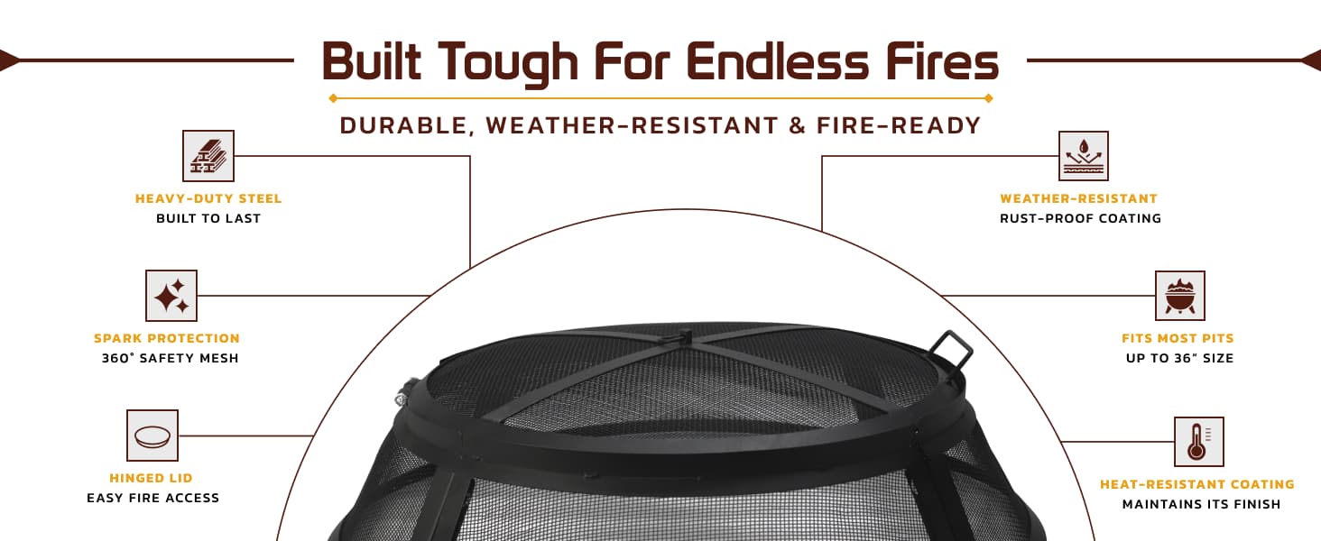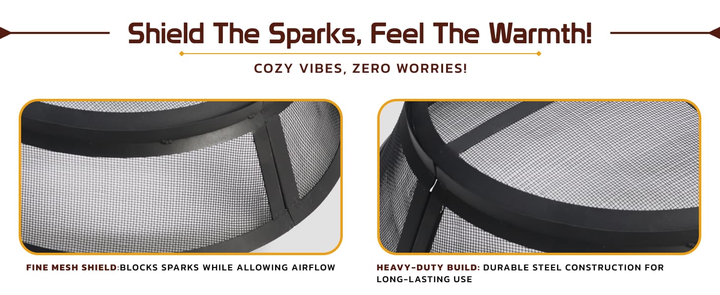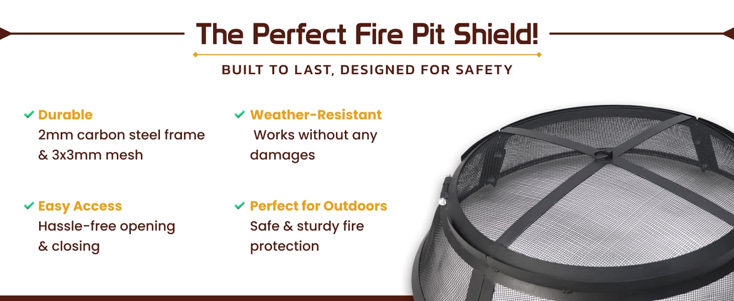 - Heat-Defying Beauty: This spark screen for firepit has a Special heat-resistant coating. fire screen for fire pit that preserves its stunning finish & Our outdoor fire pit screen even after countless fireside moments.