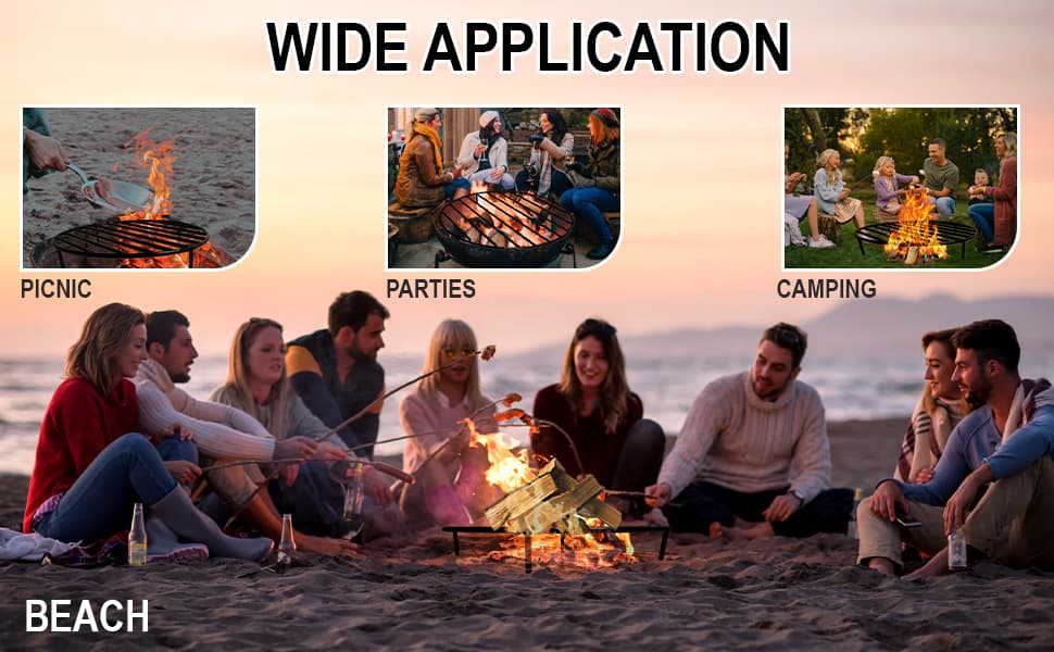 WIDELY USING STUFF: This round steel grate is great for outdoor above-ground & in-ground fire pits, on friends gathering including parties, camping, picnics, and more to enjoy leisure time and outdoor life, just set it on top of your fire pit and put your woods on it.